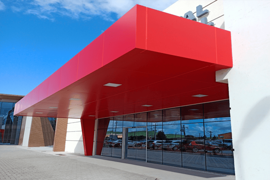 Atendemos Rondonópolis com projetos completos de fachada em ACM para lojas, empresas e indústrias.